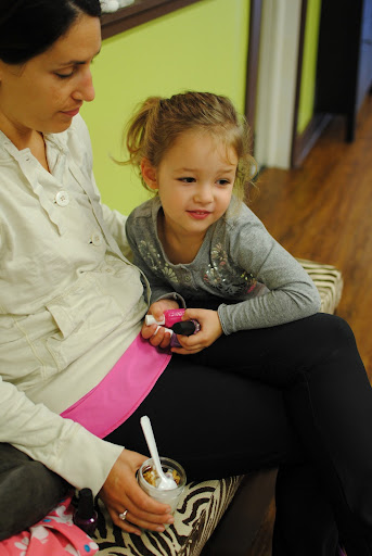 At the salon they were waiting for us to arrive, having switched their music to the disney station and wall flatscreens to cartoons... it was the perfect place for any little or not so little girl to hang out for a couple of hours. We set up a breakfast station, stocked with an assortment of refreshing drinks ranging from a Vitamin C packed smoothie to coconut water... of course coffee and green tea were available too. We brought mini muffins and all of the components of a yogurt granola berry parfait... to be served in mason jars! It was a crowd pleaser and easy to carry while in the spa. By the end all hands and feet looked lovely and smiles were abundant. We will be sure to do this again sometime in the future!