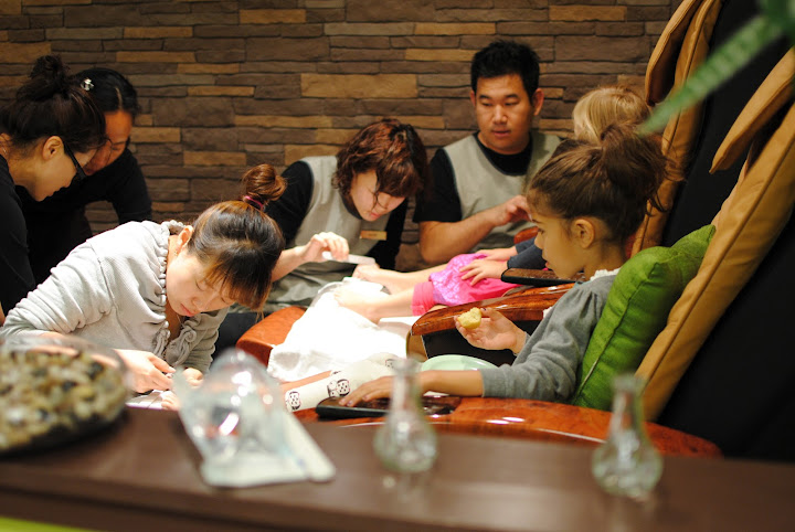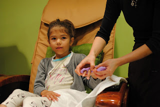 Last Sunday we organized a Mommy and Me Spaahhh Party at a local salon. It was a gloomy wet morning so lazily we slipped out of bed, quickly dressed, pulled out the flip flops, packed the car with simple party supplies and off we went.